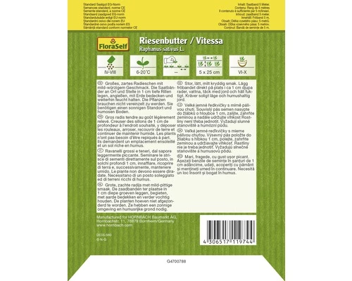 FLORASELF® Radijs Riesenbutter Zaadband Groentezaden